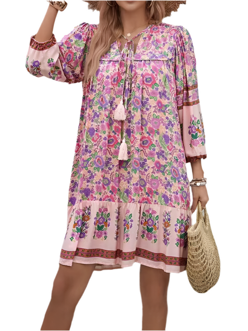 Full Printed Tie Neck Dress Material: Woven Fabric Composition: 100% Viscose Care Instructions: Machine wash or professional dry clean Size Informa...